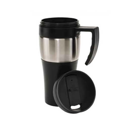 Termo metálico, con funda negra para llevar.